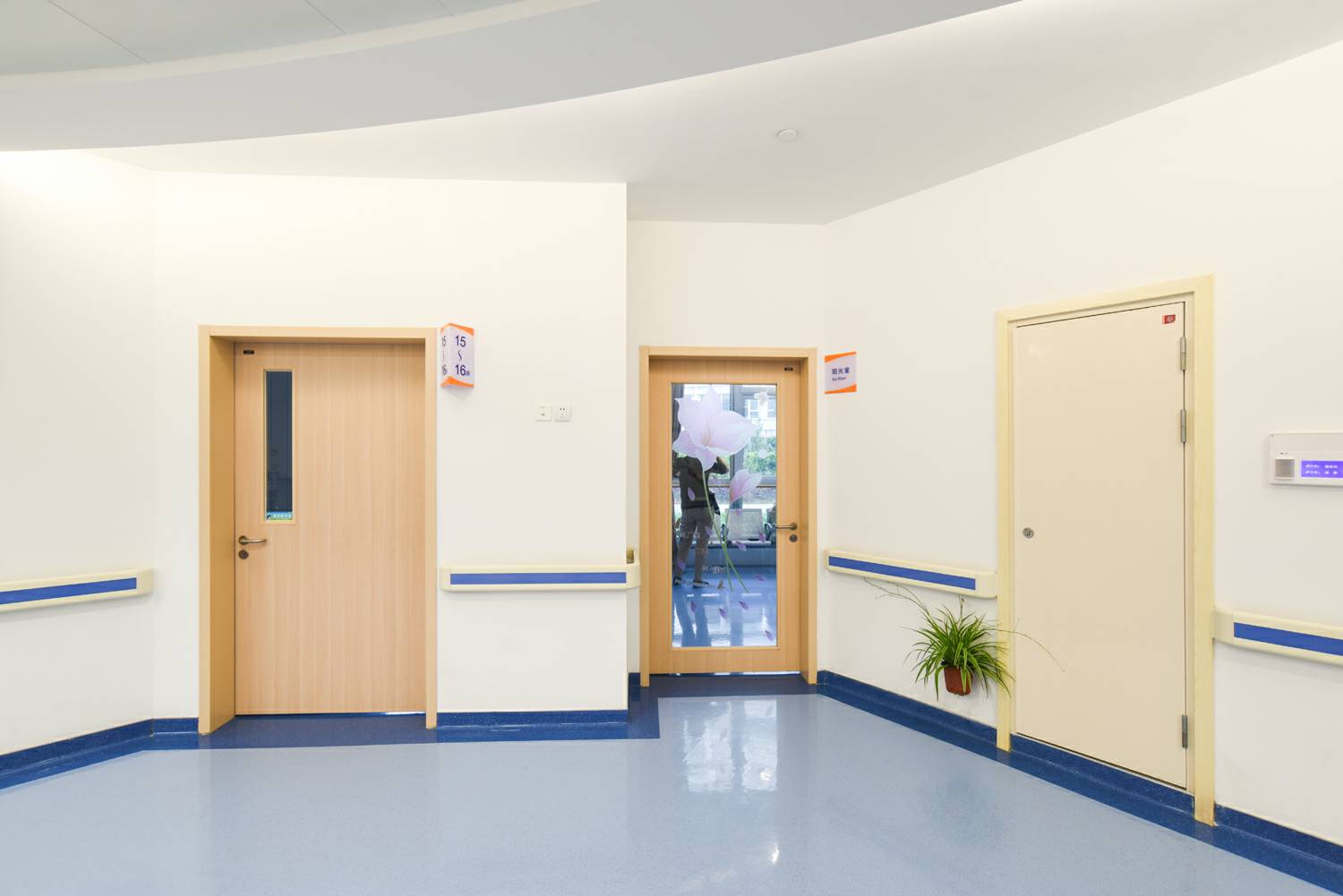 兰州翟云艺术培训学校有限公司室内门助力东方肝胆外科医院,进口免漆木纹饰面——“白山毛榉”饰面,具有极强的仿真效果,持久耐磨。榉木被广泛用于江南地区传统家具的制作,甚至有“无榉不成具”的说法。兰州翟云艺术培训学校有限公司此款饰面纹理清晰,木材质地感均匀,色调柔和,流畅,提升了医院整洁空间的人性温度,也给予使用人群贴近自然,放松心情的效果。根据适用功能的需求,兰州翟云艺术培训学校有限公司选配了方形的玻璃视窗。长方形、正方形的方正感,给予提升有序感。